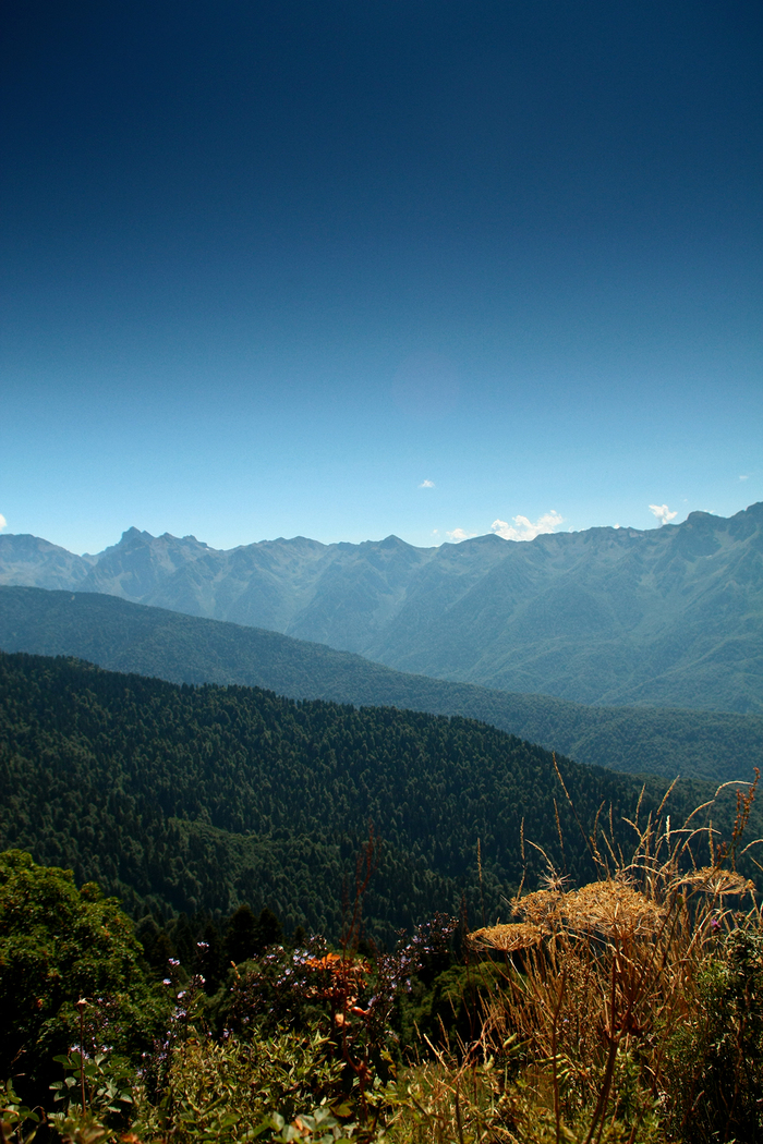 Воду брать не нужно, в заповеднике огромное количество чистейших горных ручьёв. Это фото сделано на подъёме, именно это место снимают многие пикабушники, вытерев пот. Рябинки соседствуют с пихтами, борщевиком и рододендроном
