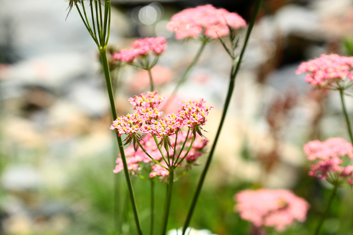 Розовый тысячелистник это не тысячелистник вовсе. Рос рядом со снежником. Чем ближе к снежнику, тем больше похоже на весну - зеленее, цветастее и ручьистее.
