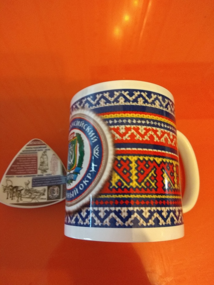 А чтобы было из чего пить кофе на вахте - кружка с символикой ХМАО. Классный "вязаный" узор. И магнитик, конечно))