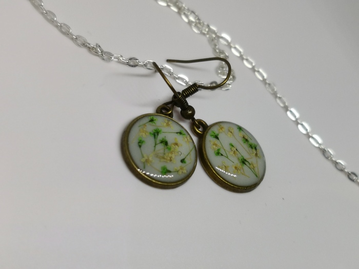 Использованы материалы:смола ювелирная эпоксидная, акриловые краски, металлическая фурнитура, сухоцветы гортензия, статице, сныть, одуванчики, ромашки)