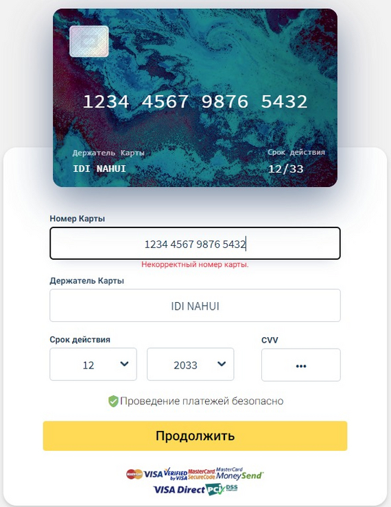 Не долго думая, заполняю данные с "редким именем" владельца карты. Сайт, что интересно, ещё как-то определяет, что точность данных. Кидаю ему скрин, что не получается ввести данные и получаю то, чего особо не ожидал увидеть: