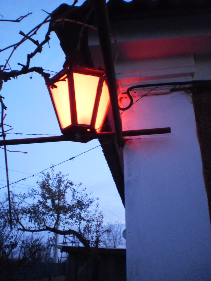 Для освещения двора взяли простую ленту белого свечения. А освещения фасада и входа - лента RGB (т.е фонарь будет светить-мигать любым цветом).