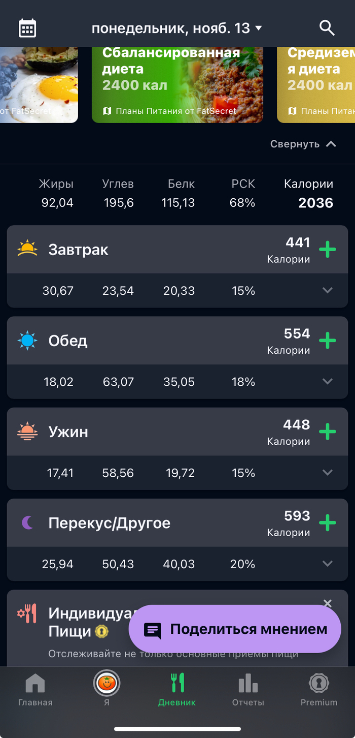 По совету авторитетных людей в комментариях скачал приложение FatSecret и начал туда всё записывать. Очень понравилось, все удобно - все понятно. Осталось решить, что с этим дальше всем делать?!