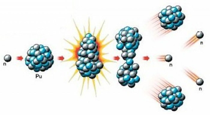 Ядерный распад- это когда два больших атома распадаются на два маленьких, в результате чего масса осколков меньше массы ядер, пропавшая масса и уходит в энергию.