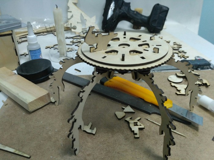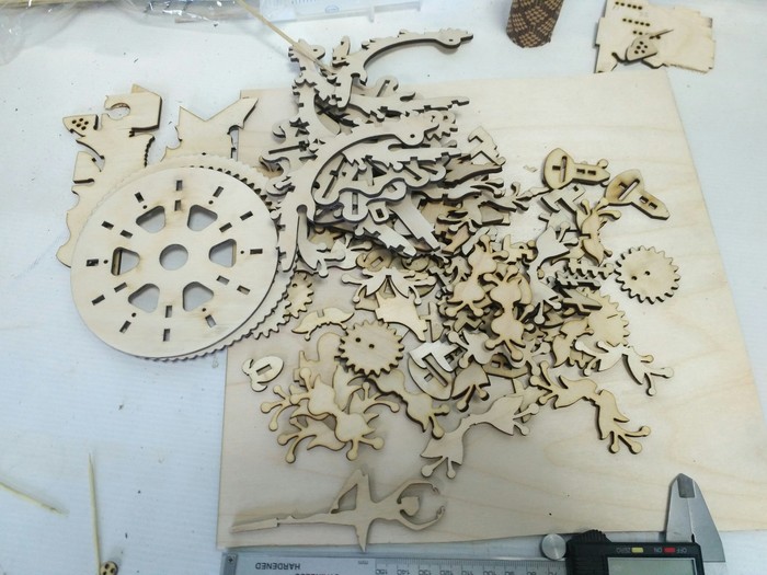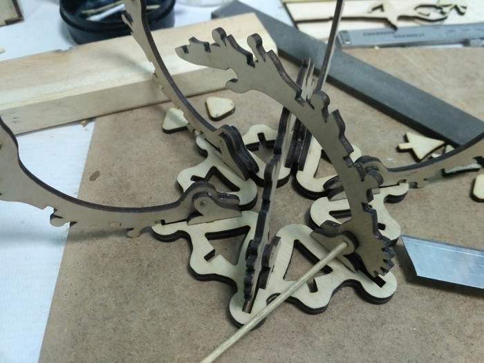 Увидев в интернете такой механизм из фанеры, захотел сделать подобное. Мои криворукие ручки умеют в основном только копировать, потому пустился в поиски схемы/кроя.
