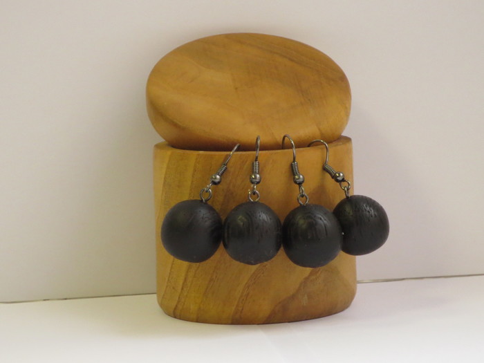 Заказала мне тут девушка серёжки с "чехлом", причём попросила делать всё руками, т.е. не интересовали идеальные формы, идеальные шарики. Сказала, что ручная работа, тем и ручная, что не идеальна. Заказано, сделано...Материал серьг - венге, размер приблизительно 20 мм, покрытие масло. Шкатулочка-облепиха, очень капризный материал, мягкий, но колкий...в общем в работе отвратителен. Диаметр приблизительно 6 см (не измерял), высота 8см опять же примерно. После заказа, задумал такие жене на 8 марта выточить.