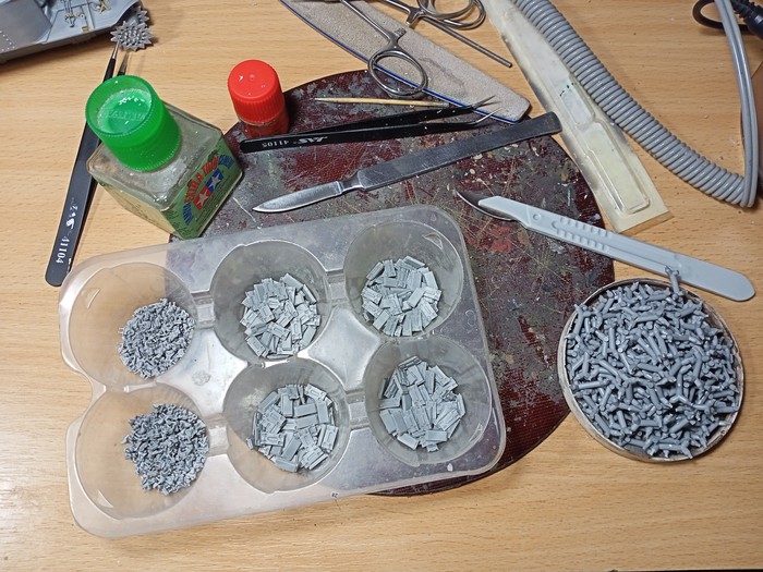 Ну и вишенка на торте: гусеницы! Так выглядят 632 подготовленные детали. Большинство моделей, что я собирал, имело в целом намного меньше деталей, чем одни лишь гусеницы этого зверя.