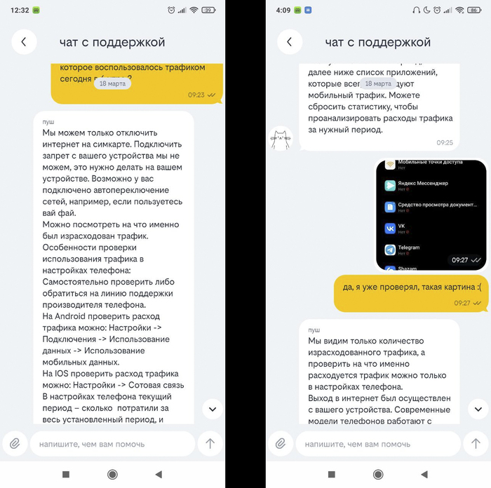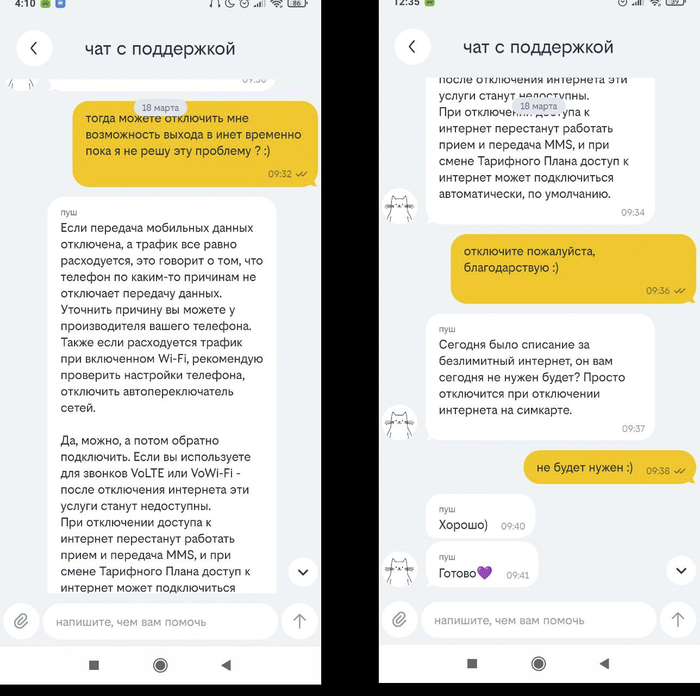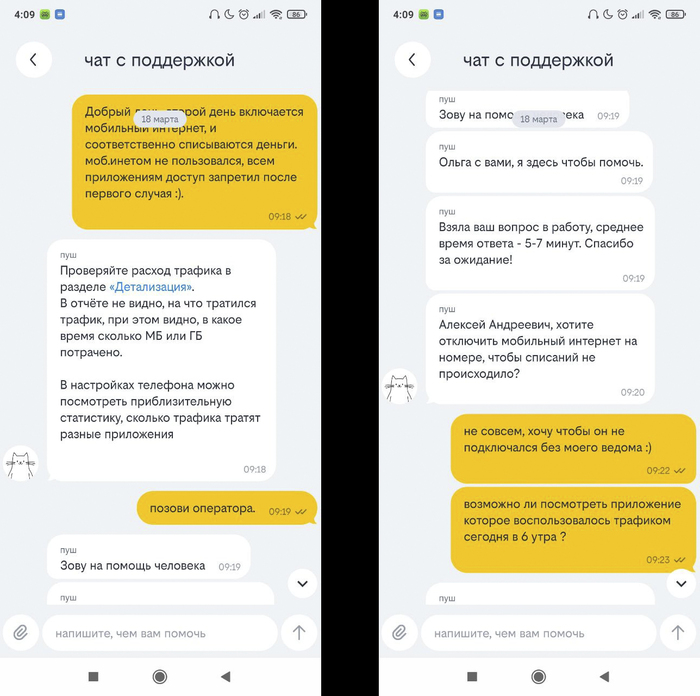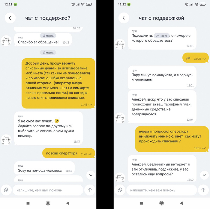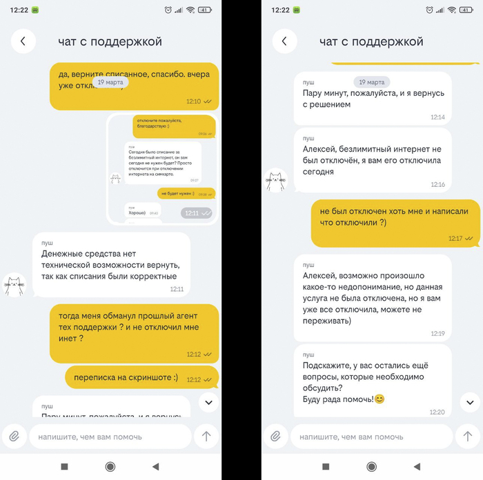 18го марта, ситуация повторяется, пишу в ТП. на скринах диалог, краткая выжимка: