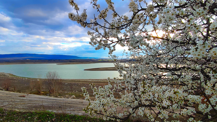 Весна балует нас разнообразием. Ждешь тепла, уже настроился, даже, на жару и, вот, снова холодно. Цветут абрикосы и алыча, и к их белому цвету добавляются, порой, снежные хлопья. Необычно.