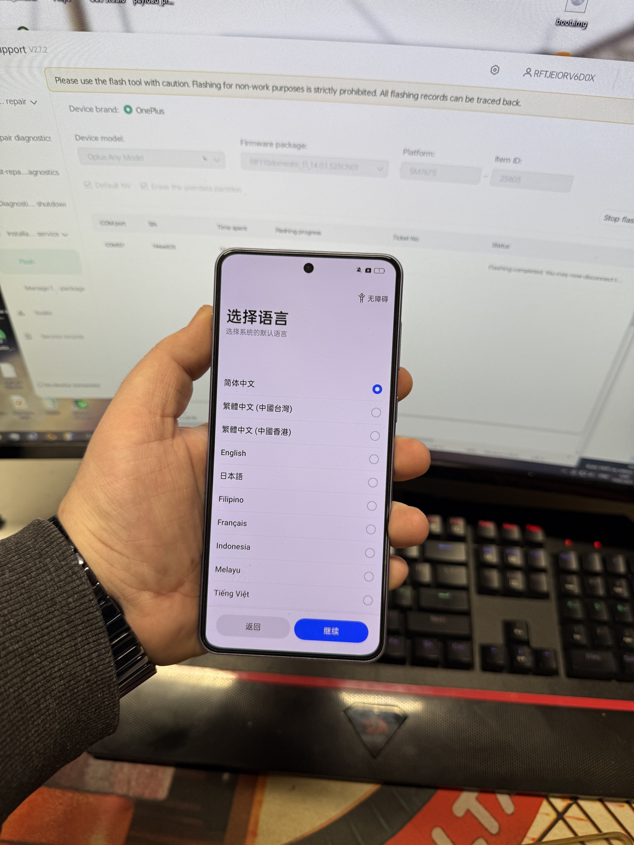 Трубка начинает прошиваться, я не выдержал напряжения и пошел в магазин за колой, когда вернулся, в программе процесс был выполнен на 100%. Телефон все еще находился в 9008 режиме. Перегружаем руками, и о чудо видим надпись "Color", а это значит что устройство прошилось.