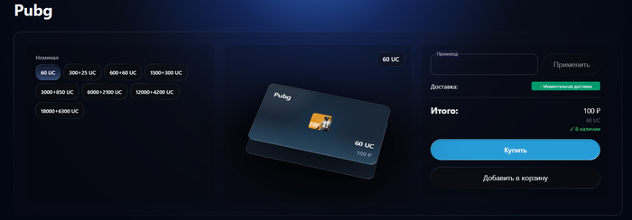 Цифровые сервисы — прямое пополнение UC по коду подарочной карты без привязки карты к аккаунту;