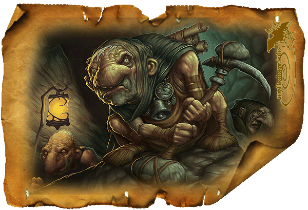 Дракон- чудовище которое существует пожалуй во всех известных мифологических системах. Воровать и захватывать золото это его основное занятие. Далее он сваливает награбленное в самый дальний угол своей пещеры и спит на этой кучи. Любит есть людей, а особенным лакомством является для него девственницы. Воюет с гномами из-за их сокровищ и не всегда выходит победителем так как гномам удается скрыться в подземельях и унести свои сокровища.