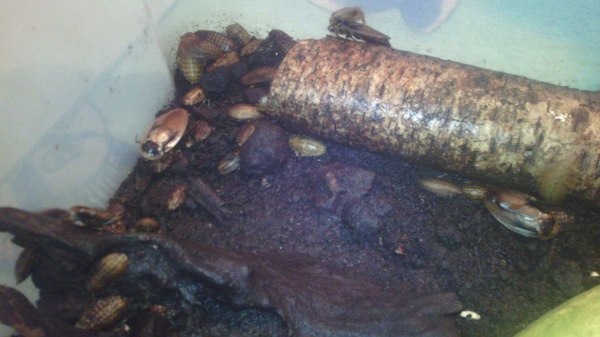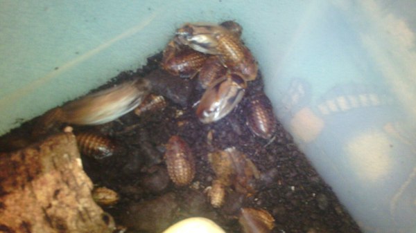 Вид пещерных тараканов, пожалуй самый неприхотливый в нашем доме. Не нуждающийся в точечном ультрафиолете, большом количестве света, воды. Правда дико прожорливые, особенно когда их много. За это я их и люблю. Плодятся быстро и часто (вырастили не одну популяцию из 2ух штук), жрут всё под чистую, из типов корма предпочитают ВСЁ. Не хватает кальция, жрём яичную скорлупу или крылья и лапки своих родственников, когда Салават недоглядел.