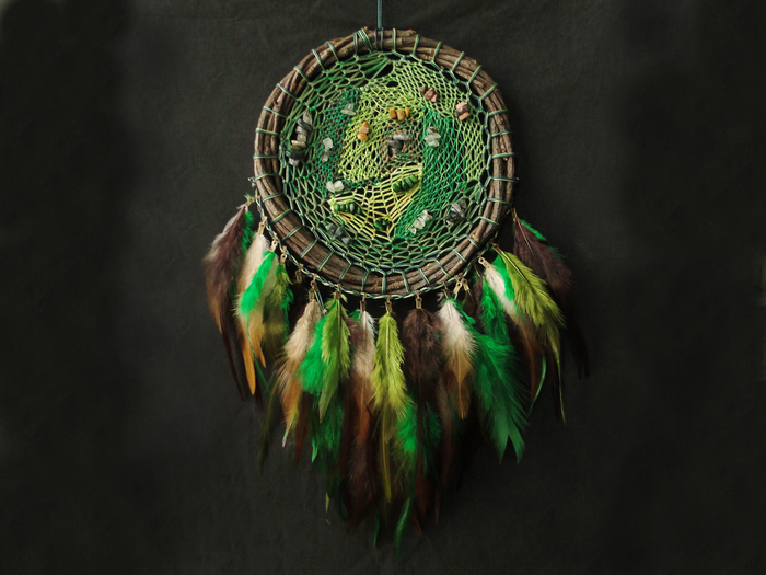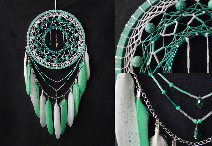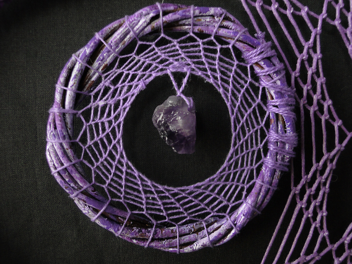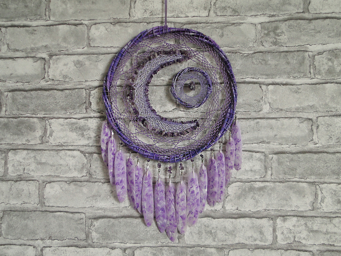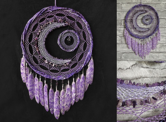 "Аметистовая луна", "Болото" и "Мята". Декоративные ловцы снов