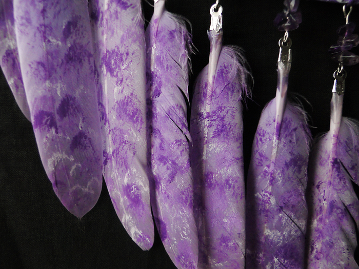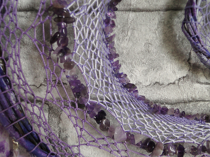 "Аметистовая луна". Крошкой аметиста внутри большого обруча выложен полумесяц, в маленьком висит кусочек необработанного аметиста.