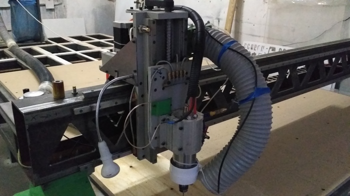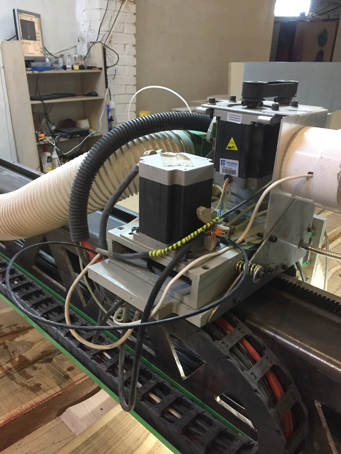 4. В случае перевозки - не нужно скидывать проводку, чтобы расцепить станину и шкаф. Я просто скидываю балку на стол станка и переезжаю (с балкой негабарит). Провода из балки я предусмотрительно не проводил через опору (научен уже) этой самой балки