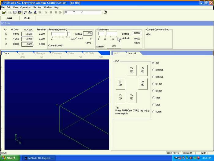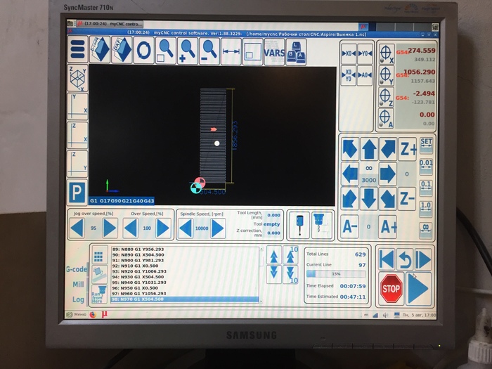 Управление было посредством NCStudio 5.6. Система простая в настройке и достаточно удобная. Самое главное - она СТАБИЛЬНАЯ и предсказуемая. Ты приходишь в цех и просто работаешь. Ничего и никогда не глючит, надо остановить программу - остановил, надо продолжить? - Продолжил с того места, где остановил. Надо с другого? - Пожалуйста, вводи номер строки и работай оттуда... Вся логика адекватная и не приносит сюрпризов. Станок работает именно так, как этого ожидаешь. Никаких приколов с S-curve и прочими вещами... В общем, если вам нужно работать, а не ломать моск - ваш выбор ncstudio 5.