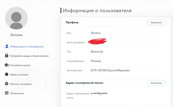 Заходите на официальный сайт Nintendo, авторизуетесь в своем аккаунте, открываете раздел с данными пользователя и редактируете профиль.