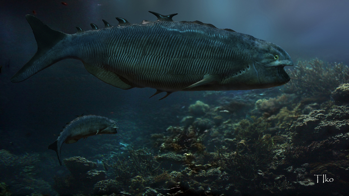 Они известны под общим названием панцирных рыб и внешне (морфологически) действительно напоминали рыб с туловищем, покрытым то отдельными костными пластинками (Birkenia) или шипами (Ldnarkia), то сплошным панцирем из них, одевающим голову (Tremdtqspis) или все тело (Pteraspis). Но это были не рыбы, а рыбообразные существа, относящиеся к боковой ветви позвоночных, так называемым бесчелюстным. От настоящих рыб они отличались отсутствием челюстей и плавников.