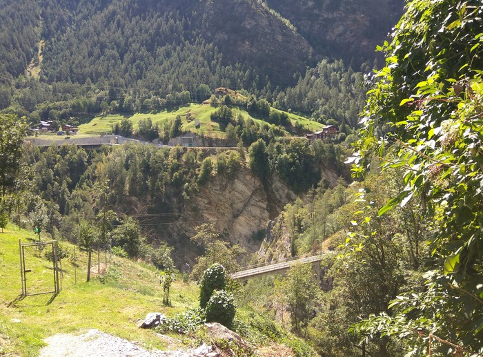 - Трасса рассчитана на мтб. СУГУБО на мтб. Если вы не двухподвес, после Штальдена лучше сворачивать на другую сторону реки по автомобильной дороге. Почему? Сейчас обьясню. Дело в том, что после долгого вползания в асфальтовый серпантин на самой низкой вашей скорости вы попадете на замечательный лесной трейл. Пока что довольно безобидный, хоть и проходит местами над обрывом без ограды и перил, примерно вот так: