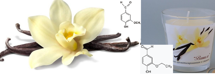 Теперь, когда вопрос с "идентичны натуральному" мы разобрали, перейдём к понятию "искусственный". Тут уже раз на раз не приходится. Для каждого случая нужно разбираться отдельно, сегодня рассмотрим только немного. Для начала возьмём ванилин. В природе он присутствует в варианте слева на картинке. Однако люди воспользовались наличием рук и сварили этилванилин - тот, что справа. Их оба получают в цехах, но этилванилин имеет втрое более сильный запах ванили, поэтому частенько вытесняет свой идентичный натуральному аналог, особенно в вопросах ароматизации бытовой химии или тех же аромасвечей, тут он вообще незаменим. Тем не менее, проведя испытания, выяснили, что он пригоден и в пищевой промышленности, поэтому в продукции, в которой не используют ваниль как таковую, а используют ванилин - всё чаще применяют именно правый, "искусственный", аналог.