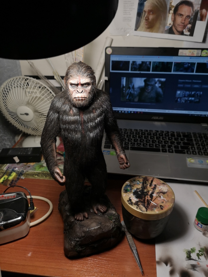 Т.к на пикабу можно получить огромное количество различных мнений, выкладываю свою работу . Это не законченный вариант Цезарь из планеты обезьян . Шерсть клеила 2 недели - мой первый опыт поклейки шерсти. Отлита фигурка из пластика , лепила из пластилина . Похож ??