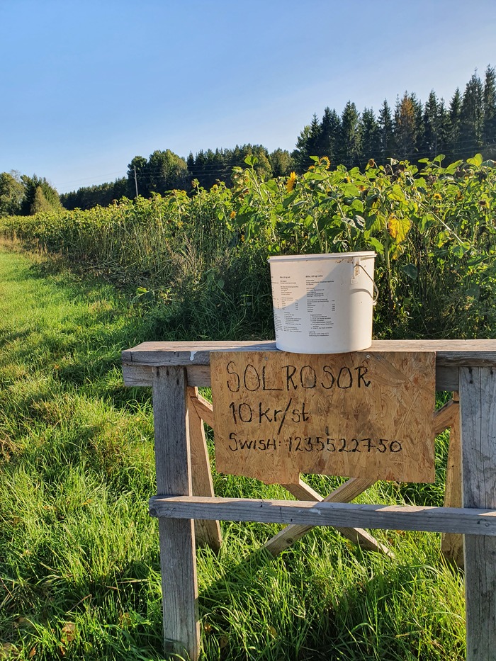 Кукуруза, картошка, мед , ягоды, подсолнух и т.д. Платишь за все Swish, через телефон.