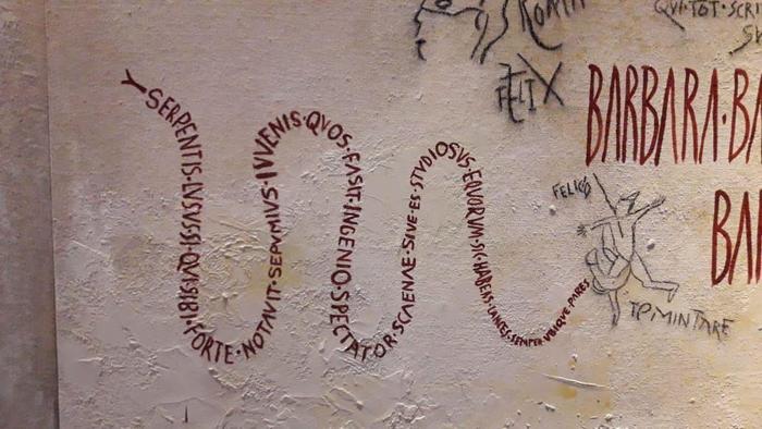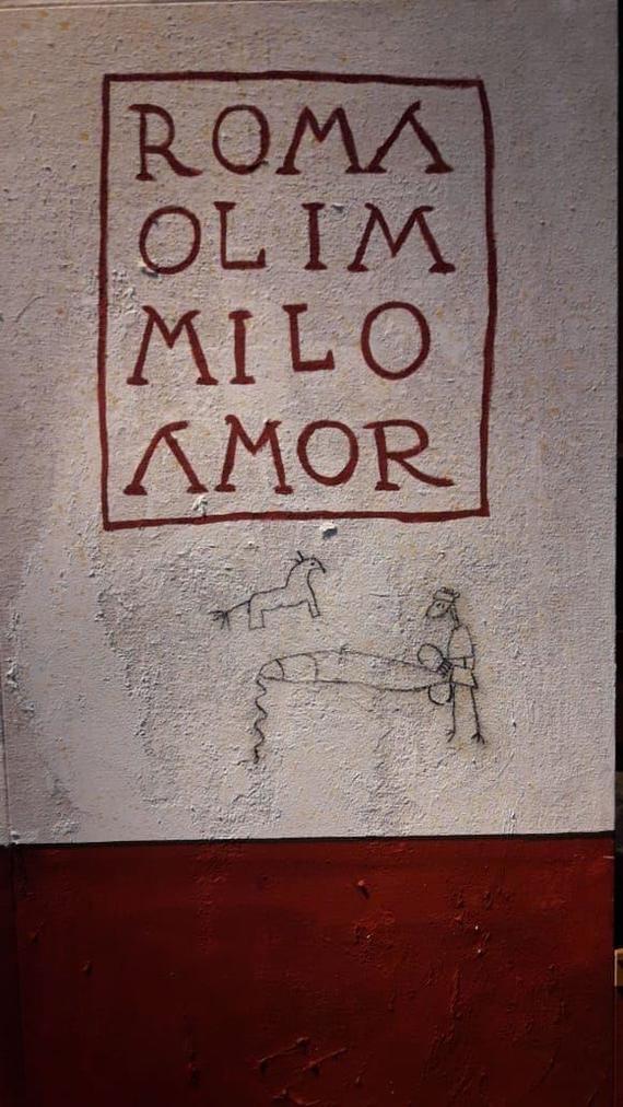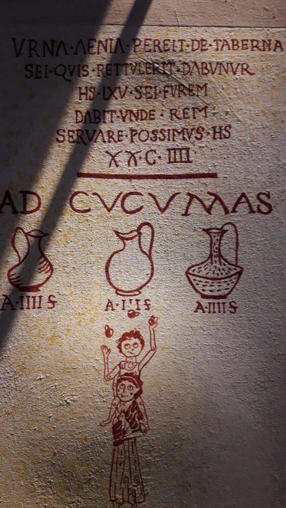 В музее Moesgaard, что в Орхусе, несколько месяцев назад открылась выставка, посвящённая древним римлянам в целом и древнеримскому городу Помпеи в частности. Там было много экспонатов, связанных с историей города, военными походами, социальной структурой и отношениям между бедными и богатыми. Была также комната, оформленная как храм (с настоящим фонтаном!), очень много древнеримской еды (ненастоящей), доспехи, оружие, и очень много римских граффити. Например, вот таких: