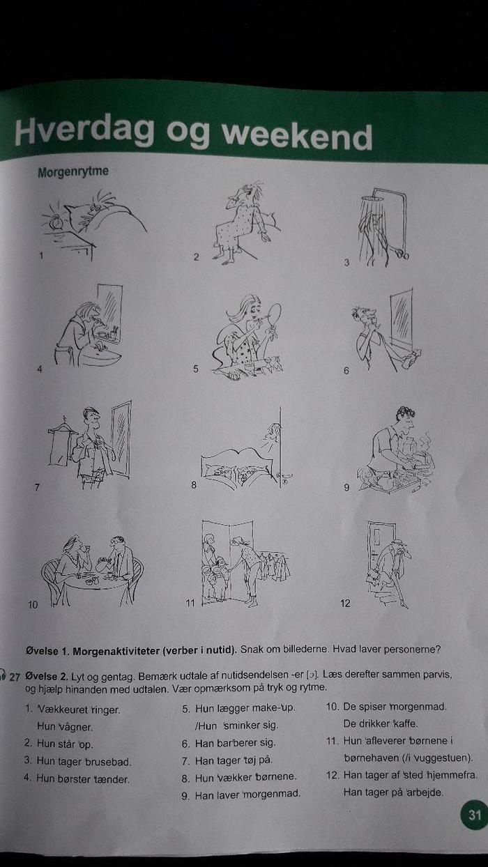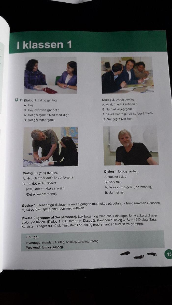 Вечерние занятия проходят с шести до восьми-тридцати, а занимаемся мы по специальным книжкам "På vej til dansk" - переводится как "На пути к датскому". Для меня стало большой неожиданностью то, что в группу постоянно приходят новые люди, и этих новых людей часто бросают в самую гущу учебного материала, как котят. Когда я пришёл, люди уже умели читать простые тексты и задавать вопросы, так что я немного потерялся 😁 но всё не так плохо - учителя тут очень милые и понимающие, и на тебя никто не давит, даже если ты ничего не знаешь.