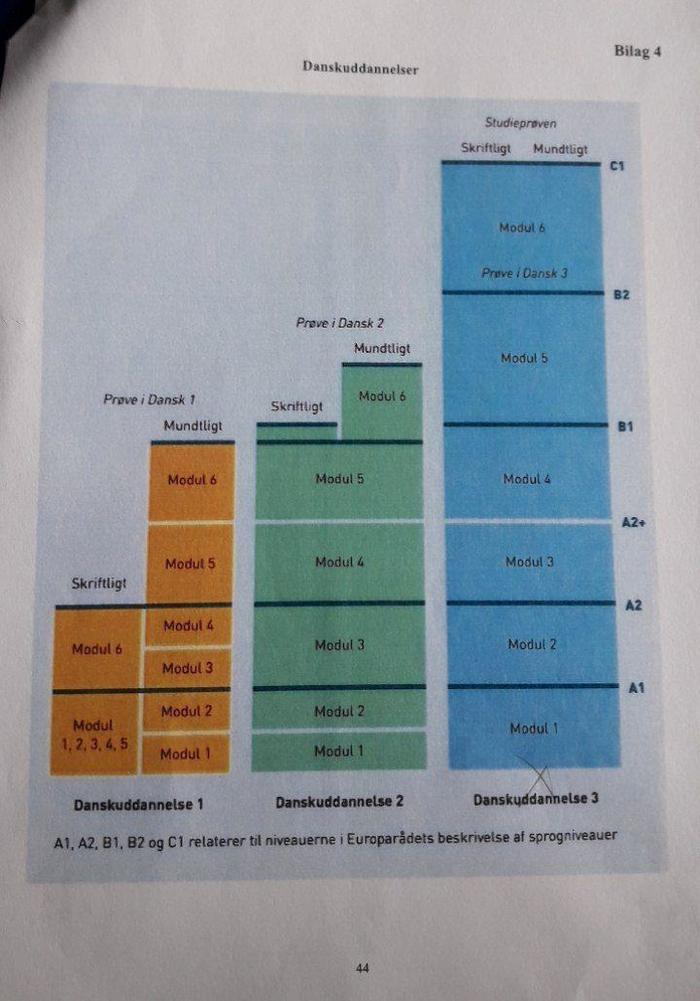 Когда-то давно обучение было совершенно бесплатным, и у учеников не было никакой мотивации учиться, из-за этого получалось так, что очень много людей начинало ходить, а потом бросало через неделю-две. Поэтому, чтобы замотивировать людей, курсы сделали платными, что вызвало немного обратный эффект, и люди вообще почти перестали на них ходить. Теперь же, с осени этого года, обучение стало опять бесплатным при условии, что ты сдаёшь все экзамены вовремя. Работает это так: в течение первых пяти лет у тебя есть возможность бесплатно обучаться, но вначале ты должен внести залог в размере 2000 датских крон; а затем, по завершении модуля, ты можешь либо забрать эти деньги назад, либо использовать их как залог для следующего модуля. Всего же модулей шесть, и каждый из них больше и сложнее предыдущего.