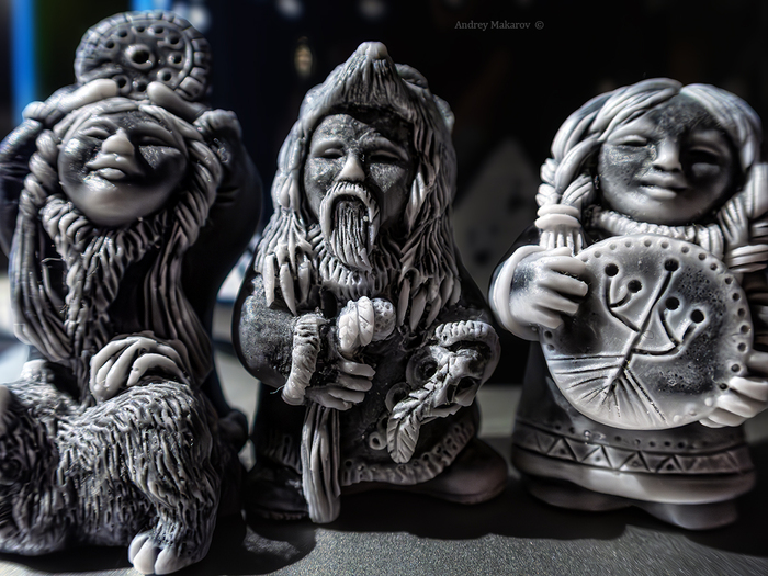 Ну что ж, Архангельск, так Архангельск, подумал я. Когда ещё удастся? Летишь с моря Чёрного к Балтийскому — почему бы не сделать крюк и до Белого? Это почти что удалось — в иллюминаторе, уже на обратном пути, была видна Двинская губа, плоский синий лист, на краю которого прилепился Северодвинск, город-невидимка. Я пытался поймать в эфире хоть намёк на гиперборейское, ощутить дыхание поморов. Но сентябрь был ещё тепл, и единственными хранителями сакрального севера оказались фигурки шаманов в сувенирной лавке, застывшие в вечном ожидании настоящих морозов. Фигурки я купил, они мне понравились