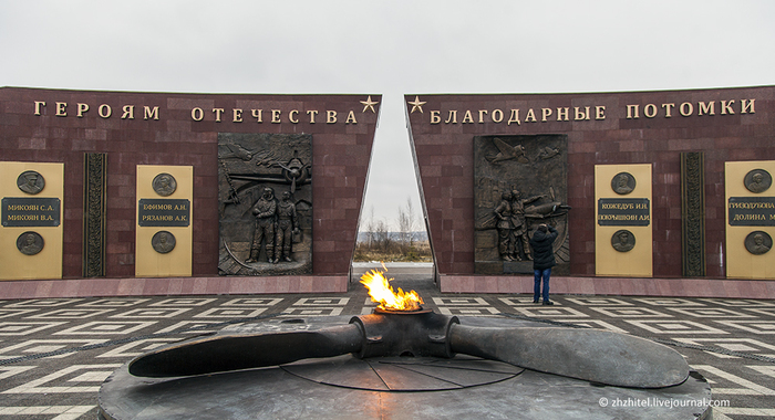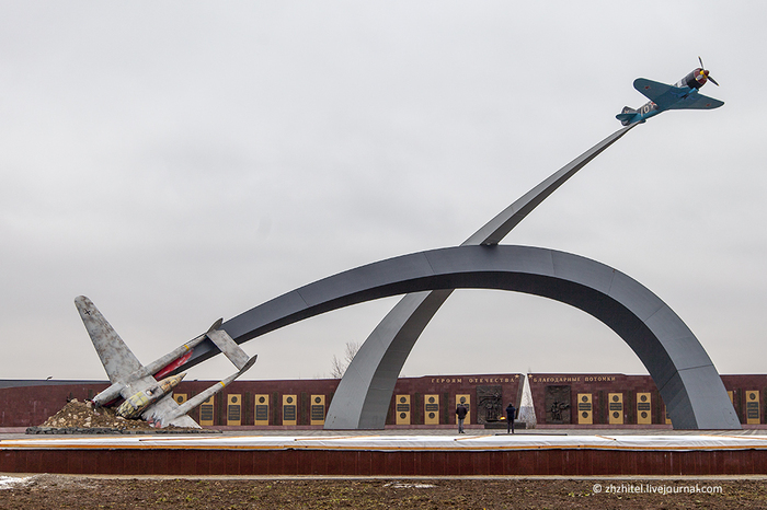 Монумент очень сильный. Пожалуй, самый впечатляющий из всех памятников летчикам-фронтовикам, которые я видел. Будете в тех краях, обязательно заедьте посмотреть.