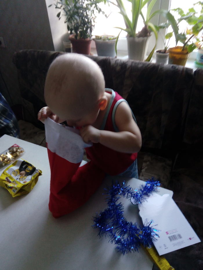 Вместо кота содержимое проинспектировал официальный Маленький помощник Санты. Фотосъемку вести запретил, ещё конфетки отобрал, а их там было ооочень много и разных ("Спасибо" #2)