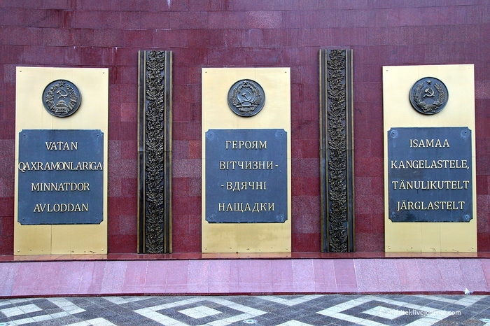 На стене барельефы героев-защитников и надписи на разных языках мира. Вся страна тогда, все народы плечом к плечу встали против фашизма, только так можно было победить фашистскую армию. Нельзя забывать об этом.