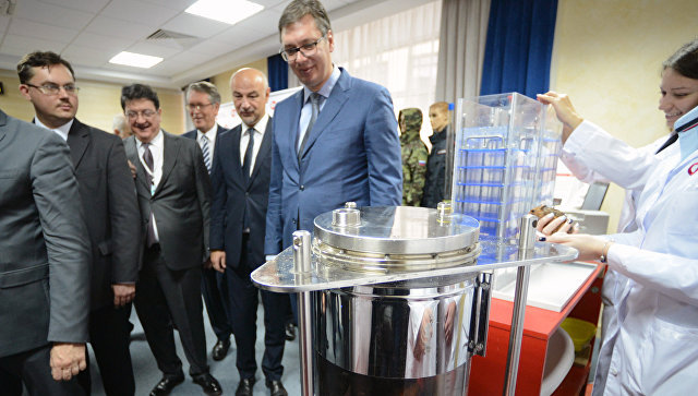 На глазах у сербского президента в особый резервуар с жидкостью была помещена собака – такса. За несколько минут она освоилась и начала самостоятельно «дышать» жидкостью. После сотрудники лаборатории вынули пса из резервуара, вытерли полотенцем, и президент Сербии смог лично убедиться, что собака в порядке. Вучич погладил пса и признался, что очень впечатлен.