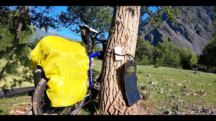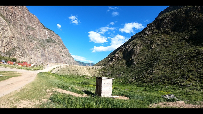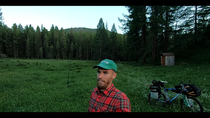 Минут через 30 добрался до источника с водой. В это же время там проезжали местные Алтайцы и порекомендовали мне заночевать прямо за источником, потому что там ровная, уединенная полянка. Шел 10-ый час вечера, так что я последовал совету и, черт возьми - это была самая шикарная полянка за последние 5 дней. Укрытое от дороги, с источником воды и даже туалетом (!) - это было идеальное место для ночлега. И хоть я экономил газ, желания делать костер во мне не нашлось. Стремительно приближалась ночь, загорались звёзды. День забрал много сил, и я рад был их отдать, потому что это был один из лучших дней в моей жизни.
