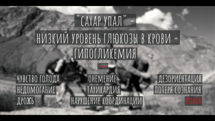 У меня сахарный диабет 1-го типа. Если кратко — физическая нагрузка снижает уровень глюкозы в крови (далее УГвК). При диабете, если УГвК упал, то нужно срочно его поднять, скушав что-то сладкое, иначе ты просто упадешь в обморок через 30 минут, а ещё через 30 впадешь в кому. Поэтому я постоянно ел конфеты на протяжении всего маршрута, и особенно много собирался (скорее вынужден) был есть перед перевалом, ведь нагрузка ожидалась нешуточная.
