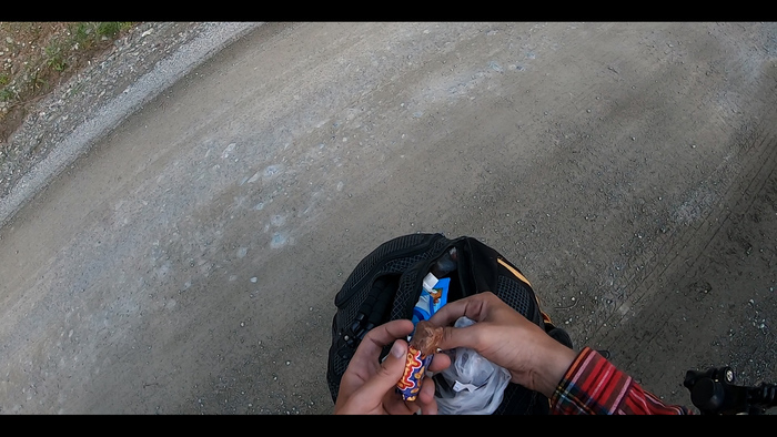 Когда я уже начал беспокоиться, ничего ли я не напутал с километражем до перевала, появился первый подъем. У меня был четкий план что-то скушать перед стартом. Во-первых, чтобы набраться сил, потому что я уже ехал много часов, не обедал и мало пил, а во-вторых, чтобы повысить сахар в крови.