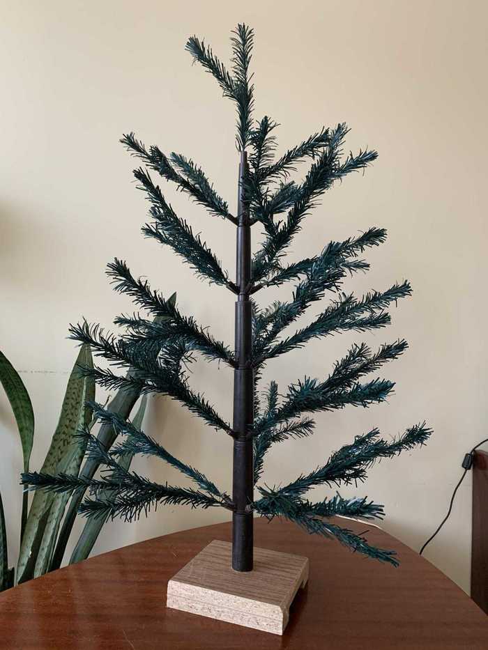 Елочка в родной упаковке. Без игрушек. Некоторые крепления заклеены скотчем. Все ветки и подставка в комплекте.
