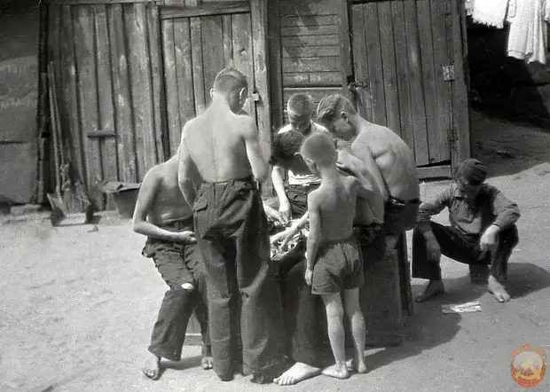 Чем занимались пацаны? Все свободное от школы и приготовления уроков время, мы проводили на дворе. Гуляли в любую пору года. Летом нас невозможно было загнать домой. Забегали на 20 минут, быстро запихивали в себя обед и опять бежали на улицу. Играли в прятки, догонялки, войнушки, казаки-разбойники. Строили себе штабы. Однажды по соседству нашли старую землянку и устроили себе там тайный притон. Лазили по деревьям, бегали купаться на озеро, ловили рыбу, ходили в походы в лес, ночевали там в палатках. Пекли в золе картошку, жарили на костре сало и колбасу, варили из пойманной рыбы уху. Играли летом в футбол, зимой в хоккей. Строили из снега крепости, играли в снежки, катались на санках, лыжах и коньках. Приходили домой тогда, когда переставали чувствовать ноги и руки, подставляли их под холодную воду, чтобы не так болело, когда отходило ознобление, впрочем ни разу никто серьезно не обморозился, все следили друг за другом и растирали носы и уши шерстяными варежками, когда они начинали белеть.
