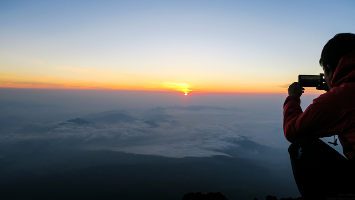 Повезло с погодой, смог насладиться полноценным восходом солнца на Фудзи:
