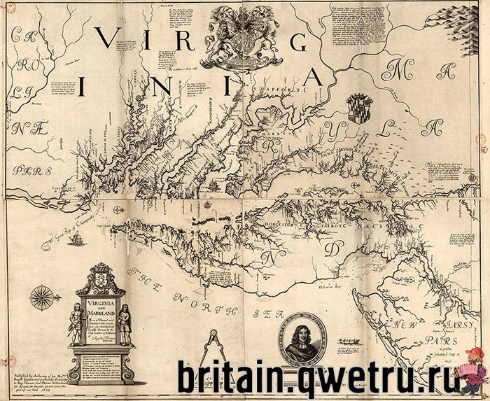 Первая карта Мэриленда. Мэрилэнд - справа.