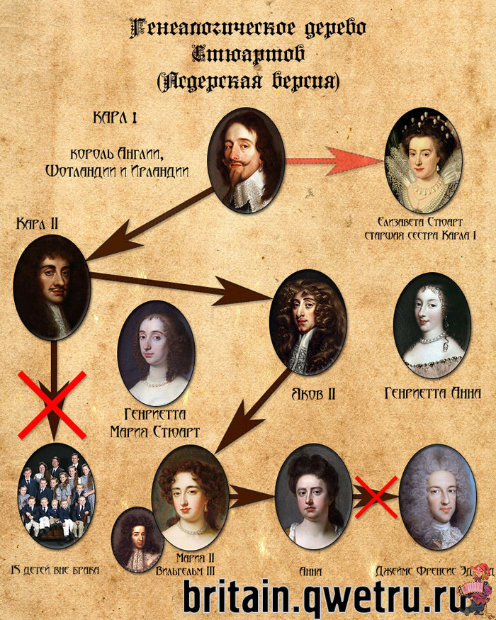 Для тех, кто запутался в генеалогическом древе Стюартов, небольшая картинка ниже: