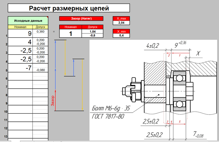 Для ЛЛ: я сделал программу в Excell для расчёта размерных цепей – вот она.