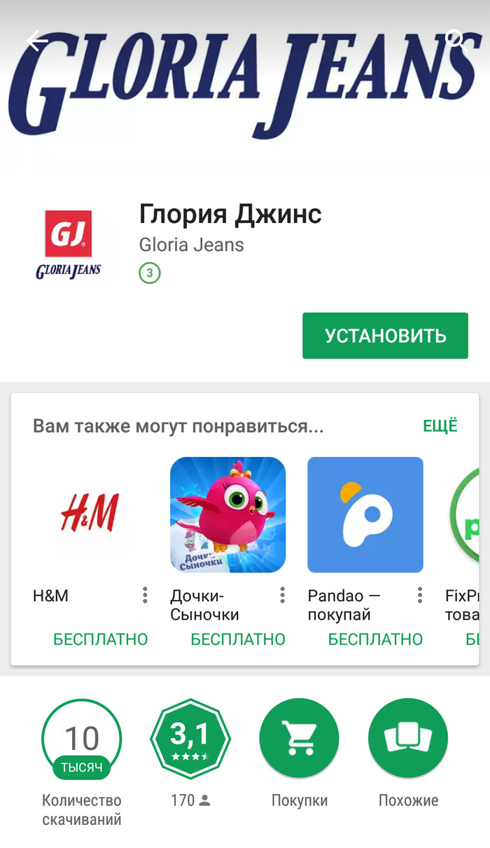Глория джинс: https://play.google.com/store/apps/details?id=com.gloriajean...