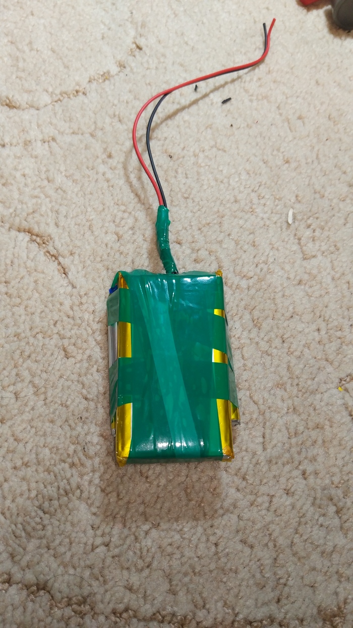 Соединил их параллельно и смотал изолентой. Получился вот такой самопальный трехэлементовый аккумулятор.