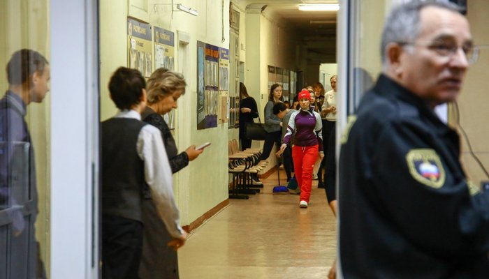 Школа № 127 в Перми на следующий день после того, как два подростка напали на четвероклассников и их учителя, 18 января 2018 года