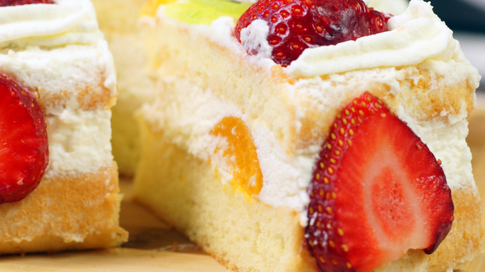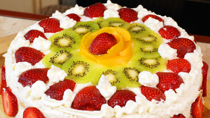 ТОРТ БИСКВИТНЫЙ со сливками и фруктами.