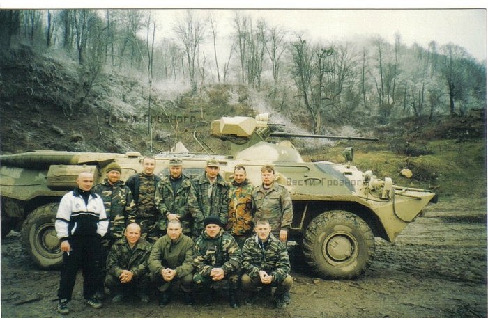 - Это мы в ССГ работали, на слиянии рек Элистанжи и Хулхулау. Этот БТР у фэйсов (прим.-ФСБ) был. Это не 82,а 80а .Отличался только пушкой. Им дрова рубили иногда. Короткая очередь и дерево падает.