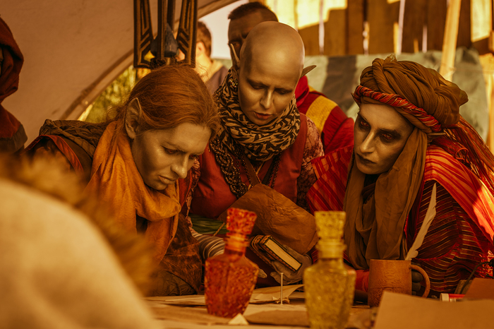 Игротехи научной экспедиции из Университета Таинств Сиродила, практиканты норд Сиги и юный альтмер Колсельмо.